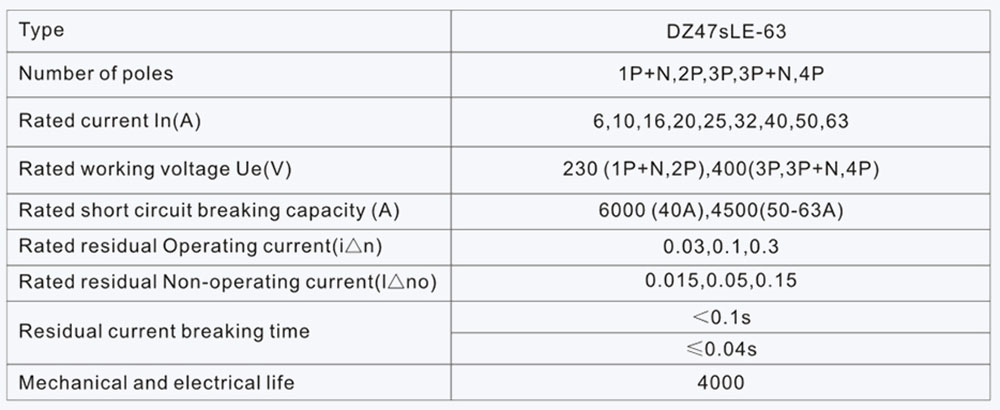 El interruptor de circuito de fuga de tierra DZ47SLE-63 es adecuado para el circuito de AC 50Hz/60Hz con voltaje nominal de hasta 400 V y corriente nominal de hasta 63a. Puede cortar la fuente de alimentación defectuosa inmediatamente para proteger el equipo personal y el equipo eléctrico con motivo de descarga eléctrica personal o corriente de fuga más allá del valor nominal. También puede proteger el circuito y la sobrecarga o cortocircuito del electromotor, utilizado para un cambio infrecuente y comenzar en el circuito.